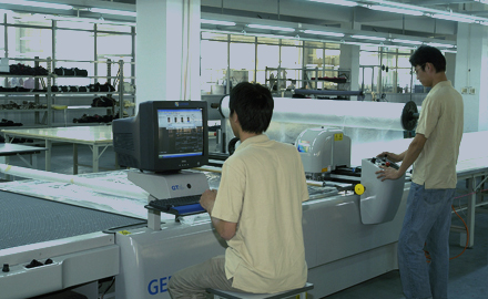 公司采用CAD計算機輔助排料系統(tǒng)進行排料,該系統(tǒng)準確、高效。鋪料機代替手工鋪料的優(yōu)點使鋪料均勻、整齊、松緊適宜、降低工人勞動強度。