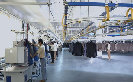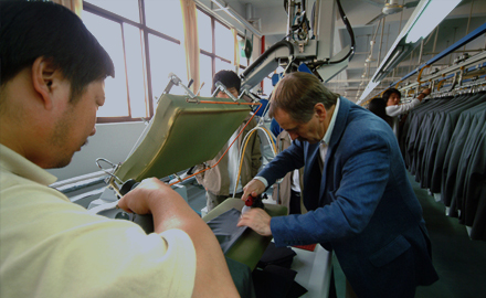 運用高品質的德國BRISAY立模整燙機,采用電腦控制蒸汽輸出量、溫度、壓力、定型、抽濕時間,根據面料的厚薄、質地、性能,以38種不同整燙程序調整以上各個參數(shù),配合服裝的整燙。